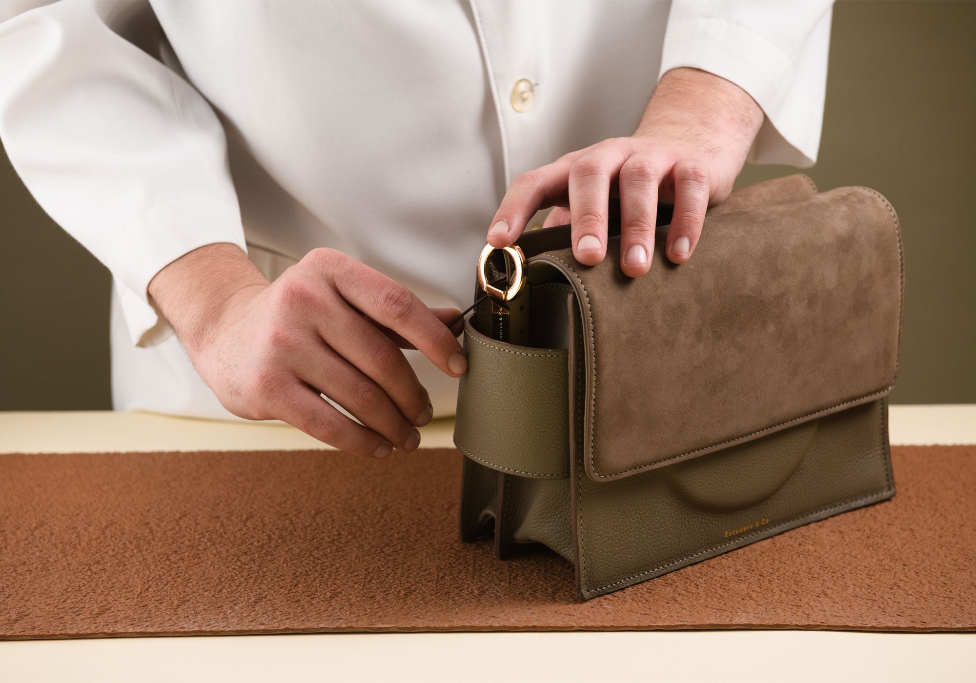 A Escudero & Co é uma marca de produtos de couro de alta qualidade, design atemporal e cuidado em todo o processo produtivo. Cada processo de desenvolvimento é feito sob total controle e aprovação, e definido levando em consideração nossos principais pilares: sustentabilidade, autenticidade e localidade.