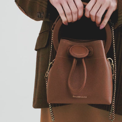 A nova Bolsa Ange Bucket resgata os anos 80 e traz de volta referências clássicas da época. Desenhamos um shape que segue à risca as linhas da categoria, com a presença do DNA Escudero. Incorporamos nossa principal matéria-prima, o couro, em todos os detalhes da bolsa, desde o corpo até os aviamentos.
